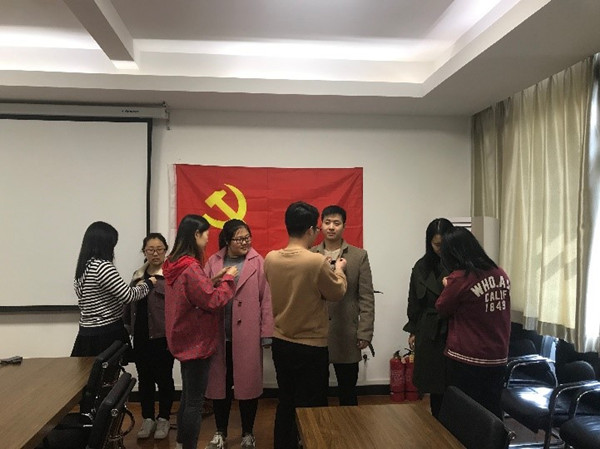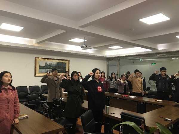 在会上,党支部宣传委员张亮传达了本次活动精神,对活动的主要流程和安排进行了介绍,并进行了相应的动员讲话。接下来,由支部的几位正式党员为补彤、赵兵欣等新发展党员、预备党员佩戴党徽。活动最后,全体党员在党旗下重温入党誓词。全体党员承诺,大家会积极参加活动中各项安排,亮党员身份,践党员承诺,树党员形象,做合格党员。通过此次宣讲和启动仪式,为后续活动的成功推进奠定了思想基础。