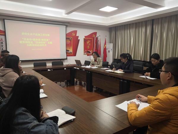 为深入学习党的十九大精神,引导支部党员在新学期以积极向上的精神风貌开启新征程,3月15日晚,研究生农产品加工支部于公司党员活动室举行了“亮身份•践承诺•树形象”暨贯彻落实“四讲四有”主题实践活动启动仪式。