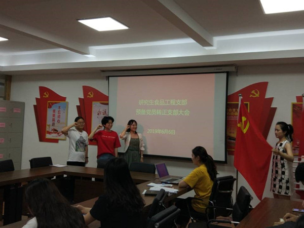 在6月6日下午,研究生食品工程支部于五楼会议室召开支部大会,对是否接纳姚远溪等三位预备党员为正式党员进行讨论。会议由支部书记辛乐主持。