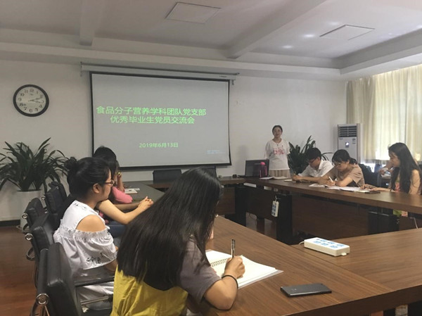 为充分发挥优秀毕业生党员的先锋模范带头作用,在6月14日下午15点,食品分子营养学科团队支部开展了支部优秀毕业生党员经验交流会。党支部书记刘夫国,2018届党员毕业生,以及支部内党员参加了会议。