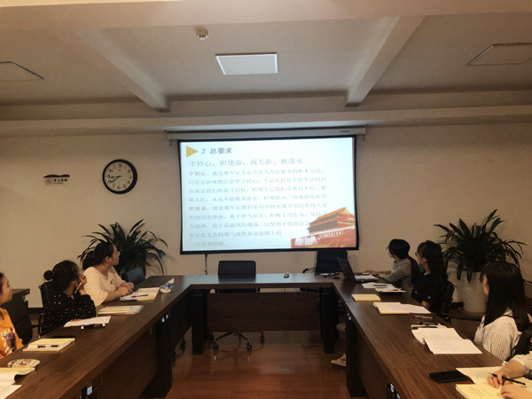 支部书记张凌雁带领大家深入学习贯彻习近平总书记重要讲话精神,牢固树立“四个意识”、坚定“四个自信”、做到“两个维护”;准确把握“不忘初心、牢记使命”的总要求、根本任务、具体目标和重点措施;引导全体党员永葆初心,提高自己的创新能力。
