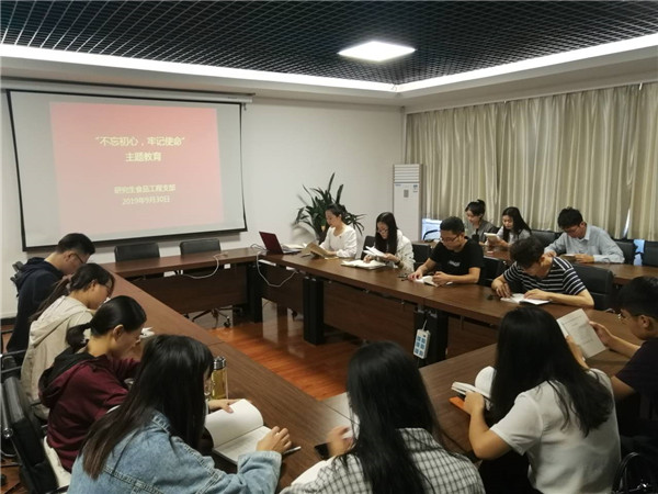 根据“不忘初心、牢记使命”主题教育动员部署,9月30日上午,研究生食品工程支部开展了“不忘初心,牢记使命”主题交流活动,活动由支部书记李雪珂同志主持。