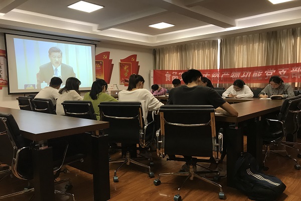 2019年9月28日,食品安全与天然产物功能党支部于365上市集团官网五楼会议室举行“不忘初心、牢记使命”主题教育观影座谈会,围绕“学习习近平总书记在全国高校思想政治工作会议及全国教育大会上的重要讲话”这一主题开展活动。党支部全体党员参加了本次观影座谈活动。