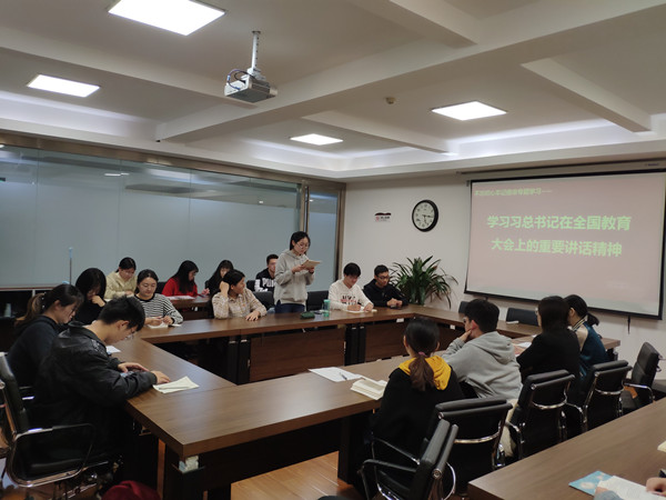会上,首先由支部书记带领所有同志学习了《习近平总书记在全国教育大会上的讲话》。接着,党员代表依次发言。