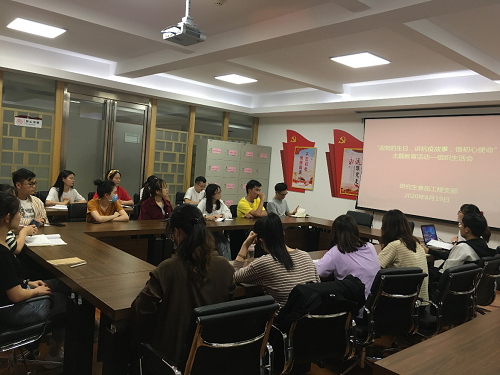 为全面贯彻落实教育部党组关于迎接建党100周年工作的安排部署,根据公司《贯彻落实<教育部直属高公司党组织迎接建党100周年行动方案>工作台账》、党委学工部《关于开展“迎党的生日,讲抗议故事,悟初心使命”主题教育活动的通知》相关安排,研究生食品工程支部在2020年8月19日下午召开党组织生活会。