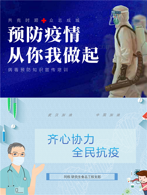 为深入贯彻落实十九大精神,贯彻落实习近平总书记关于新型冠状病毒感染的肺炎疫情的重要讲话要求,贯彻落实党中央决策部署,落实公司党委提出的“在疫情防控阻击战中充分发挥基层党组织战斗堡垒作用和共产党员先锋模范作用”要求,做好疫情防控工作。2月15日至2月21日期间,研究生食品工程党支部依托QQ群开展“武汉加油,中国加油”、“致敬战役英雄”、“防控疫情从我做起”、“身边的守护者”、“隔离疫情不隔离爱”等疫情防控的相关主题,通过手抄报、宣传海报或宣传PPT等形式进行防控宣传,争做疫情防控先行者。