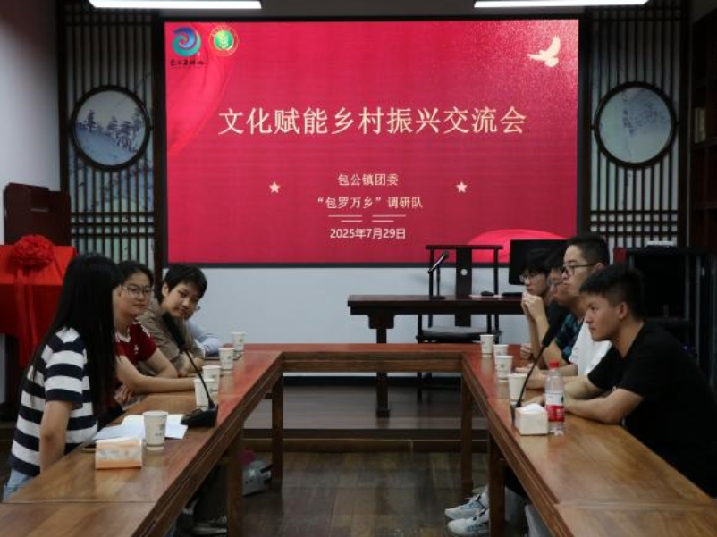 图为实践团队与包公镇团委开展交流会