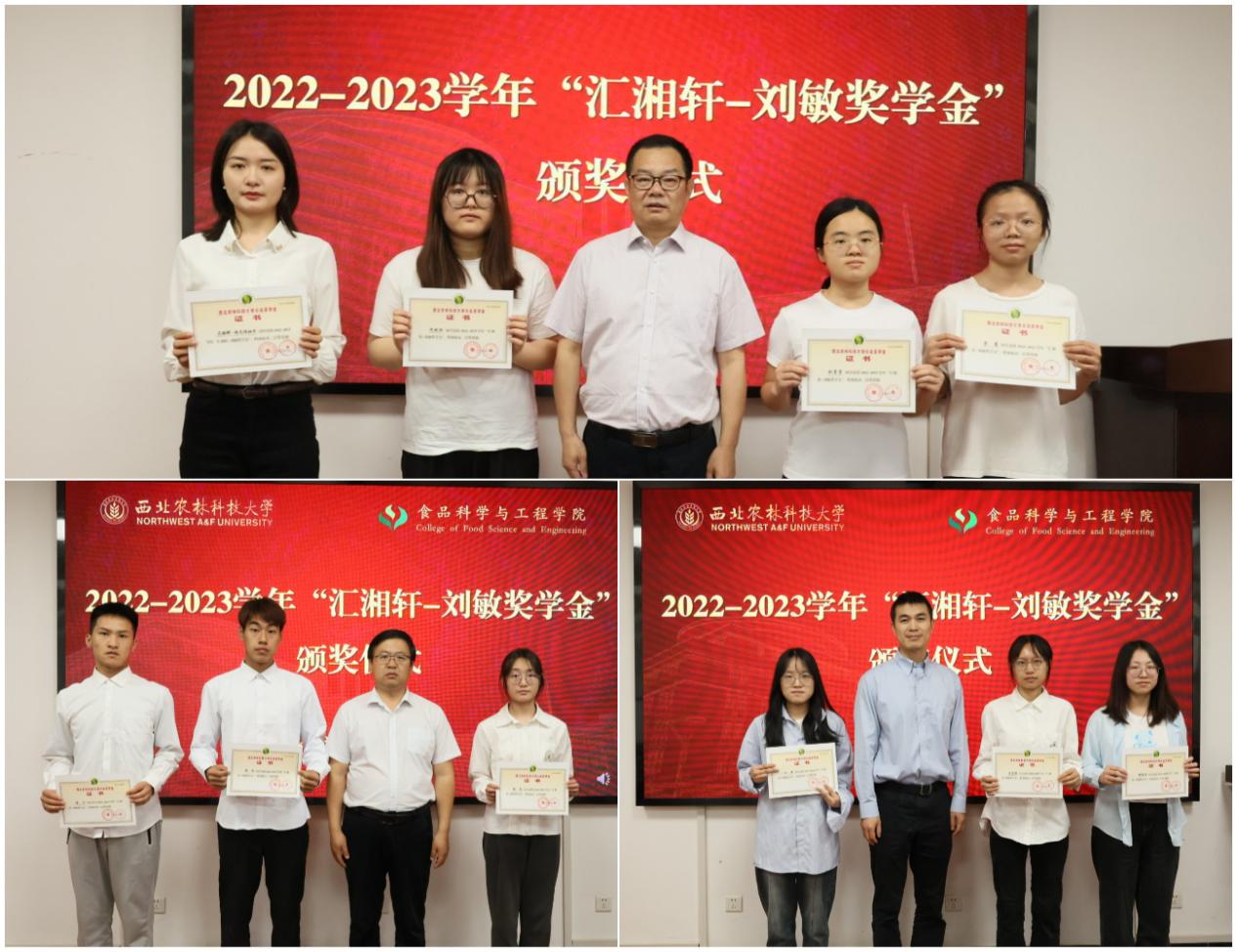 “汇湘轩-刘敏奖学金”于2014年由汇湘轩董事长王忠明先生(公司88级农学硕士)偕夫人刘敏女士(公司88级食品本科生)恰逢西农建校80周年之际设立。“汇湘轩-刘敏奖学金”每年评选10人,资助标准每人5000/年,设立9年来已资助品学兼优员工90人,共资助45万元。