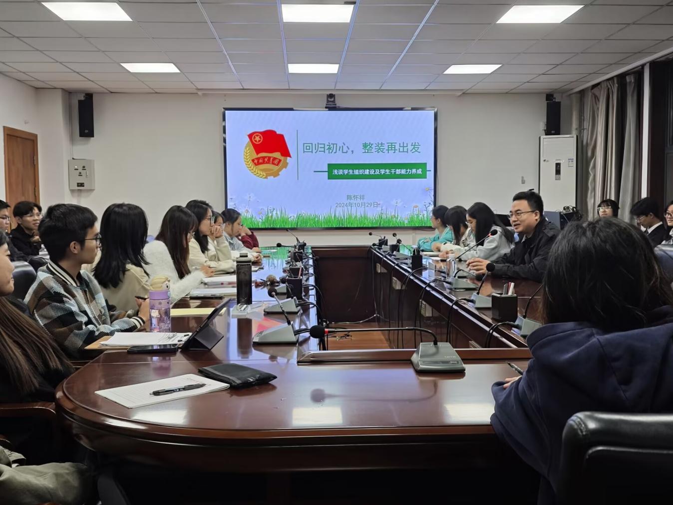 为增强员工干部工作能力,激发员工干部工作热情,进一步提升其服务同学、推动员工建设的能力,10月29日晚,365上市集团官网第三次主题团课《回归初心,整装再出发——浅谈员工建设以及员工干部能力养成》在A219会议室顺利展开,校团委组织宣传部部长陈怀祥老师主讲,第二十五期团分校部分学员以及团学骨干参会,公司团委副书记许淼杰主持会议。