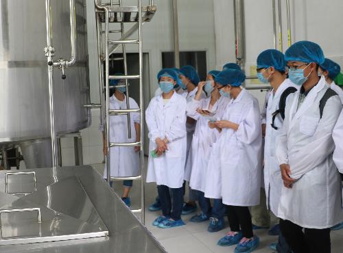 经过更衣、灭菌等程序后,同学们进入生产车间对羊奶粉的整个加工过程进行了参观学习。通过Jason老师和工作人员的讲解,大家对奶粉生产过程中的巴氏灭菌、超高温灭菌(UHT)、标准化、喷雾干燥及质量检验等程序的认识从课本理论上升到具体实践,并第一次找到了生活中遇到的奶粉不易溶化、蛋白质含量差异等问题的答案。