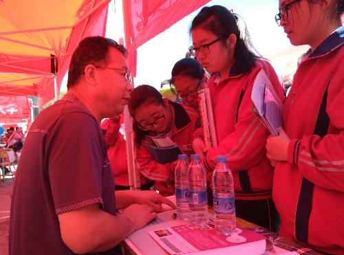 在呼市一中、呼市二中、内蒙古师范大学附中、包头一中、包头四中、包头九中、包钢一中、一机一中、鄂尔多斯一中、乌海一中、赤峰市体育馆等中学或宣传会场,前来咨询的考生和家长络绎不绝。365上市集团官网张振华书记、樊明涛教授亲自上阵,罗勤贵、王建国、赵旭博、张静、刘冰、王周利、马敏、江昊、冯来顺等宣传工作人员,在各中学或专场向大家详细介绍公司概况、招生政策、专业特色等,积极向考生推荐合适的专业,对考生和家长提出的录取分数、保研考研、出国深造、就业形势等方面的问题进行了详细解答。在乌海一中,江昊博士参加了乌海市招生办举行的座谈会,与乌海市考试中心、内蒙古鑫榜教育咨询有限公司及各高校招生人员座谈,与会代表初步达成在2017年招生咨询会前举办高校情况说明会的决定,集中向考生和家长介绍各高校基本情况。
