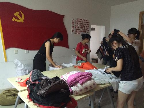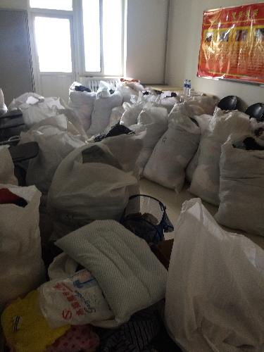活动当天,在南北校区设置募捐点,通过悬挂条幅、发放宣传单等进行宣传,吸引公司各院系党员及普通同学的广泛参与。在大家的共同努力下,共捐赠衣物书籍35袋,衣物全部进行重新整理,清洗、消毒,后续进行邮寄工作。