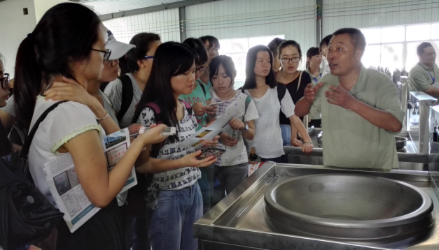 在西凤酒厂,同学们跟随厂方讲解老师,深入了解了凤香型白酒的历史文化与酿造过程,查看了年份很久的“大酒海”;在大明厨具机械公司,了解了工业化生产膳食的基本设备,收到企业的热情接待;在泾渭茯茶生产厂家,同学们参观了传统工艺和现代加工的茯茶,品饮了这一我国茶业生产的奇葩;在杨凌粮食储备库,学习了现代“智慧储粮”的控制过程;在杨凌质量技术监督检验所,了解了地方食品安全检验的实验室建设和装备……