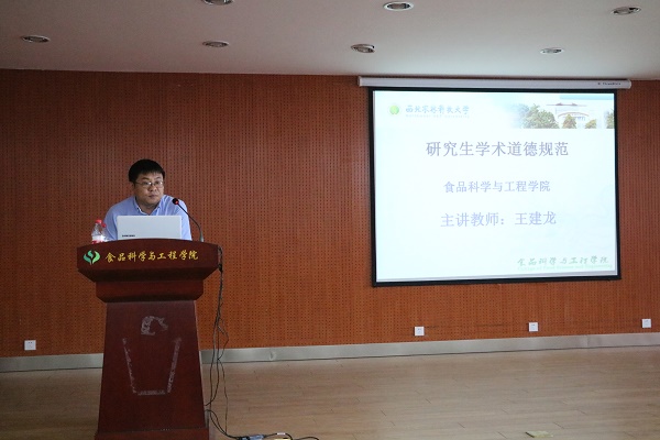 第二讲由王建龙教授带来以“研究生学术道德规范”为主题的讲座,王教授以真实事件为例,向新生讲述了学术不端及造假对每个研究生以及老师的恶劣影响。他指出,作为一个研究生,首先要具备基本的道德修养和学术素养,忠于实验结果,不弄虚作假。其次,应该尊重他人的劳动成果,不剽窃他人学术成果。他表示,进入研究生阶段,每个新生要正视学术压力,调整心态,迎接研究生生活。