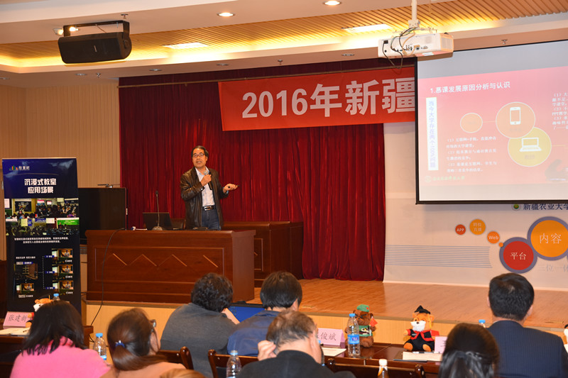 研讨会由东西部高校课程共享联盟与新疆农大教师教学发展中心共同举办,旨在探讨在“互联网+”课程教学改革时代,高校该如何建设和利用各类在线开放课程资源,如何创建共享环境、实现资源共享。