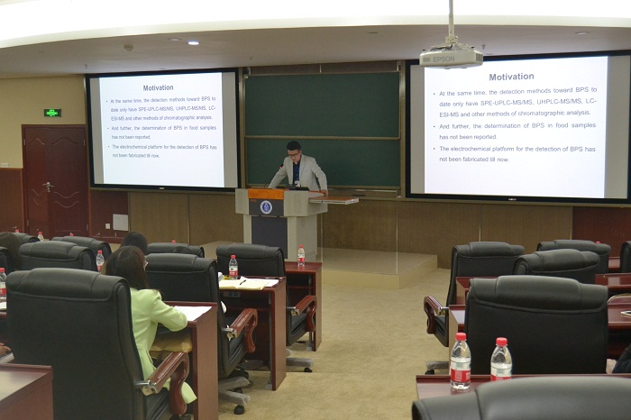 论坛共设置两个分会场,分别由公司刘学波教授以及西南大学食品科学公司曾凯芳教授主持。论坛中共有来自于各个高校的16名研究生就相关研究领域作了精彩的报告。公司博士研究生宋歌、汪蓉和朱文新分别作了题为《硫辛酸通过改善体内外氧化还原平衡缓解丙烯酰胺诱导的神经毒性》、《三氧化钨纳米光催化材料的制备及其降解水中有机染料的研究》以及《硫化铜/纳米金异质结纳米线阵列:一种新型三维电极用于牛奶中双酚A和双酚S的高灵敏同时检测分析》的学术报告,受到了与会老师和员工的高度好评。其中,宋歌和汪蓉同学的论文分别获得了本次论坛的一等奖和三等奖。