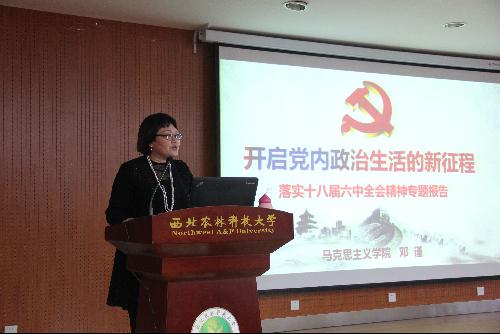 12月7日下午,在食品楼六层学术报告厅,公司邀请马克思主义公司副经理邓瑾副教授做十八届六中全会精神学习辅导报告,全体师生党员参加了学习。