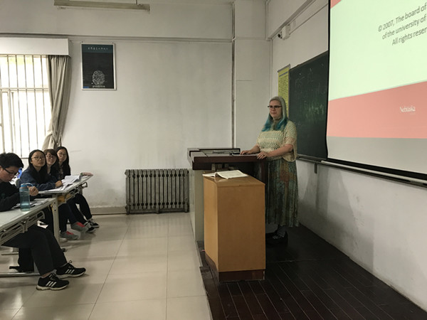 5月9日,内布拉斯加林肯大学(简称UNL)食品科学与技术系Heather Hallen-Adams博士在N8101教室为2016级食工国际班员工讲授《食品科学实践》课程。