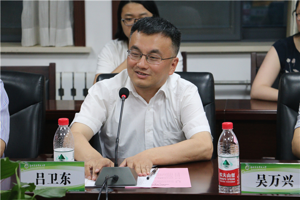 吕卫东对郭海庆董事长致以衷心的感谢,对获得奖学金的同学表示祝贺。他感谢郭海庆员工对资助事业的长久热心和不忘母校回报母校的初心,用自己的精神气质和实际行动激励着新一届员工,真正做到了西农“诚朴勇毅”精神的传承。时代在变,做好高校教育工作要因事而化、因时而进、因势而新。这就要求打破传统高等教育固化模式,实施创新驱动战略,建设创新型国家。期望郭海庆员工能够把自己的成功创业事迹更多的讲给西农学子听,以多年自我积淀、自我思考帮助西农学子选择目标定位,树立创新创业意识;进一步加强校企合作,并邀请郭董回校担任创业导师。