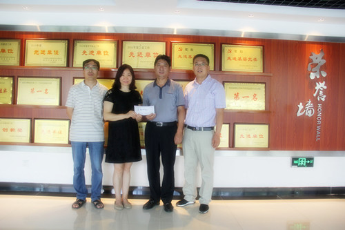 员工代表罗安伟和李巨秀代表食品93级本科全班同学向公司“后稷奖学金”基金捐款人民币5000元,用于资助品学兼有、家境困难的研究生。