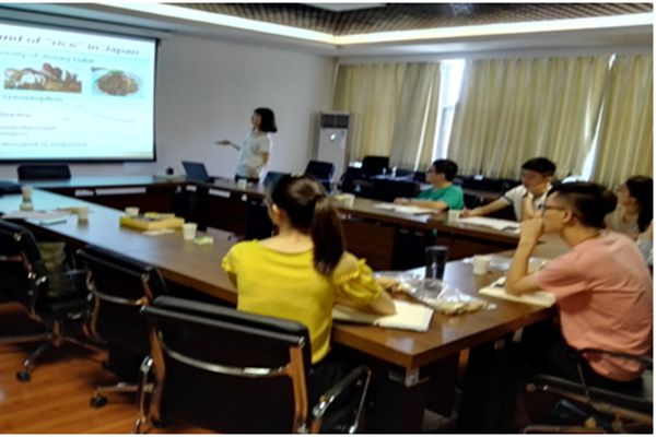 28日两位日本专家参加了植物蛋白工程实验室seminar,并介绍了自己的研究方及最新研究进展。29日,藤田博士在植物蛋白工程实验室并亲自指导三位同学进行杂粮面包制作等试验。30日,藤田博士指导研究生进行了荞麦等面条感官评价试验。双方还对中日合作项目“Value promotion of products from minor crops in the undeveloped areas of China(2016-2020)”前期的研究进展及今后的工作安排进行了讨论。通过为期一周的考察、交流,双方在荞麦加工利用关键技术的研究方向及内容达成共识,表示将进一步加强合作研究,在一些关键技术上有所突破,并将成果形成知识产权,并进行转化。