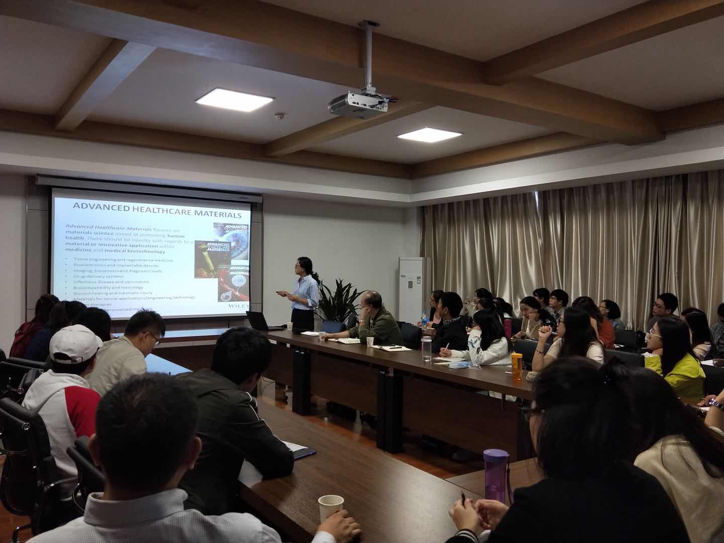 针对科学技术研究论文产出的迅速增长,稿件在投稿过程中竞争激烈的情况,公司特邀请Wiley杂志社副主编胡晓歌女士于9月30日上午10:00在公司六楼创新会议室举办“期刊论文撰写及发表技巧”专题报告会,以期给予公司师生期刊论文撰写及发表一些指导,报告会由副经理王建龙教授主持。
