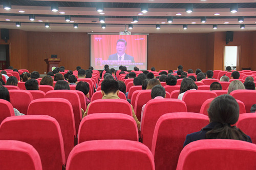 10月18日上午,举世瞩目的中国共产党第十九次全国代表大会在北京人民大会堂隆重开幕。公司党委中心组成员、领导班子成员、全体无课师生集体收看了党的十九大开幕会盛况,聆听习近平总书记向大会作的主题为“不忘初心,牢记使命,高举中国特色社会主义伟大旗帜,决胜全面建成小康社会,夺取新时代中国特色社会主义伟大胜利,为实现中华民族伟大复兴的中国梦不懈奋斗”的报告。全院师生为十九大的胜利召开欢欣鼓舞,并在收看结束后纷纷发表感言,畅谈对习近平总书记报告的感想与体会。
