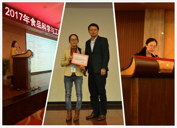 易兰花、杨昆、邱月分别作了题为《益生菌 Lactobacillus crustorum MN047所产10个新型细菌素的鉴定、异源表达及抗菌活性》、《酒酒球菌响应冷冻干燥过程蛋白质组学及表面特性研究》和《一步法制备磁性纳米颗粒功能化失活酵母用于展青霉素吸附》的分论坛报告。邱月博士的论文荣获优秀论文三等奖。