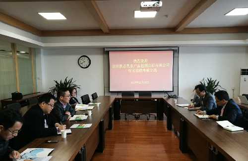 11月16日,深圳凯吉星农产品检测认证有限公司储成群副总经理一行来公司考察交流,公司副经理王建龙、党委副书记汪勇攀、中美中心副主任夏晓东、测试中心秘书及辅导员等参加了座谈会。