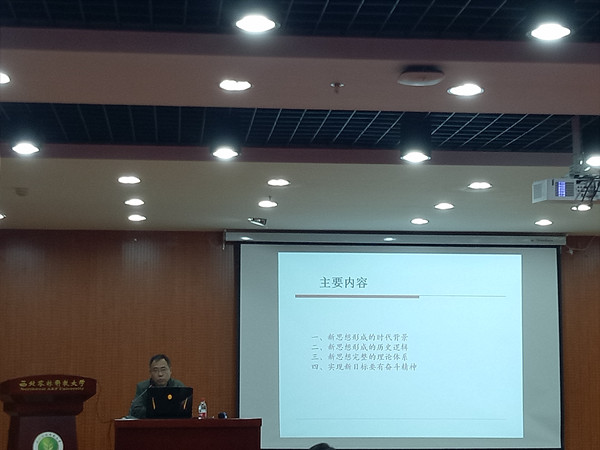 此次党课的主题是:学习领会习近平新时代中国特色社会主义思想。方老师首先就近期的大事件中美贸易战为切入点,从“新思想形成的时代背景”“新思想形成的历史逻辑”“新思想完整的理论体系”“实现新目标要有奋斗精神”四个方面深刻阐释了习近平新时代中国特色社会主义思想的重大意义和丰富内涵,系统地指导大家全面认识这一新的伟大理论成果的“前世今生”,以及习近平新时代中国特色社会主义思想对回答建设什么样的中国特色社会主义、怎样建设这样的中国特色社会主义的指导意义。方老师强调道,西农人要时刻坚定道路自信、理论自信、制度自信、文化自信,“不忘初心,牢记使命”,深入学习贯彻习近平新时代中国特色社会主义思想,牢固树立“四个意识”,为实现公司“双一流”建设的伟大事业和中华民族的伟大复兴不懈奋斗。最后方老师借习近平总书记的话“历史车轮滚滚向前,时代潮流浩浩荡荡。历史只会眷顾坚定者、奋进者、搏击者,而不会等待犹豫者、懈怠者、畏难者”鼓励同学们拼搏进取,为实现中华民族伟大复兴的中国梦不断努力。