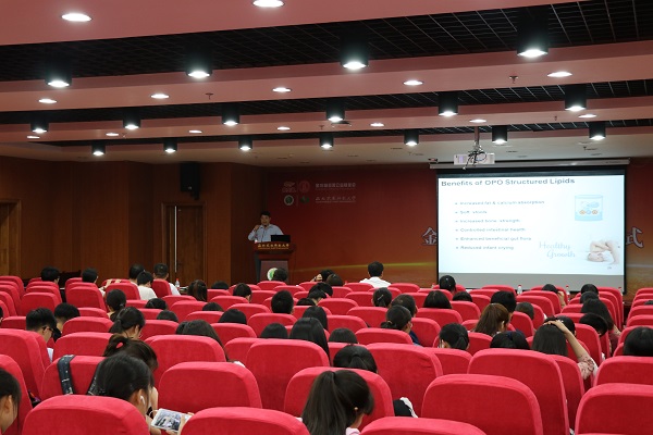 颁奖典礼结束后,徐学兵总经理进行了一场以“Tailor-making Lipids for Human Nutrition”为题的学术报告,从膳食脂质的引入、脂质结构和生物利用度、专为营养而定制脂质和总结四个部分展开报告。第一,提出了什么是人类营养的理想油脂。中国经济的快速增长所带来营养失衡,导致出现大量疾病人群。第二,要理解问题背后的原因,其一是全球性的营养问题在发生变化,其二是中国大量人群的特殊性、差异性。第三,脂肪酸、化学结构、物理操作对当前的营养益处意义重大。对营养更深的理解将伴随对食品的设计,不仅好吃还要营养健康。在此类要求下面临很多挑战,例如,怎样用技术发展来满足营养需求等。但在面临挑战的同时,行业也可获得发展动力,以新技术改变对传统的理解,对不同个体所需的营养进行定制。第四,他表示突破式的理解激发着食品行业的发展。我们现在处在最好的时代,希望每位同学参与到这种变化中。中国食品行业时代已经到来,不仅仅是满足吃饱吃好而是要吃的营养,这需要几代人的努力,我们希望到2030年能提高中国基本的营养健康水平,至2050年中国能真正从经济到人体素质全面达到发达国家水准。