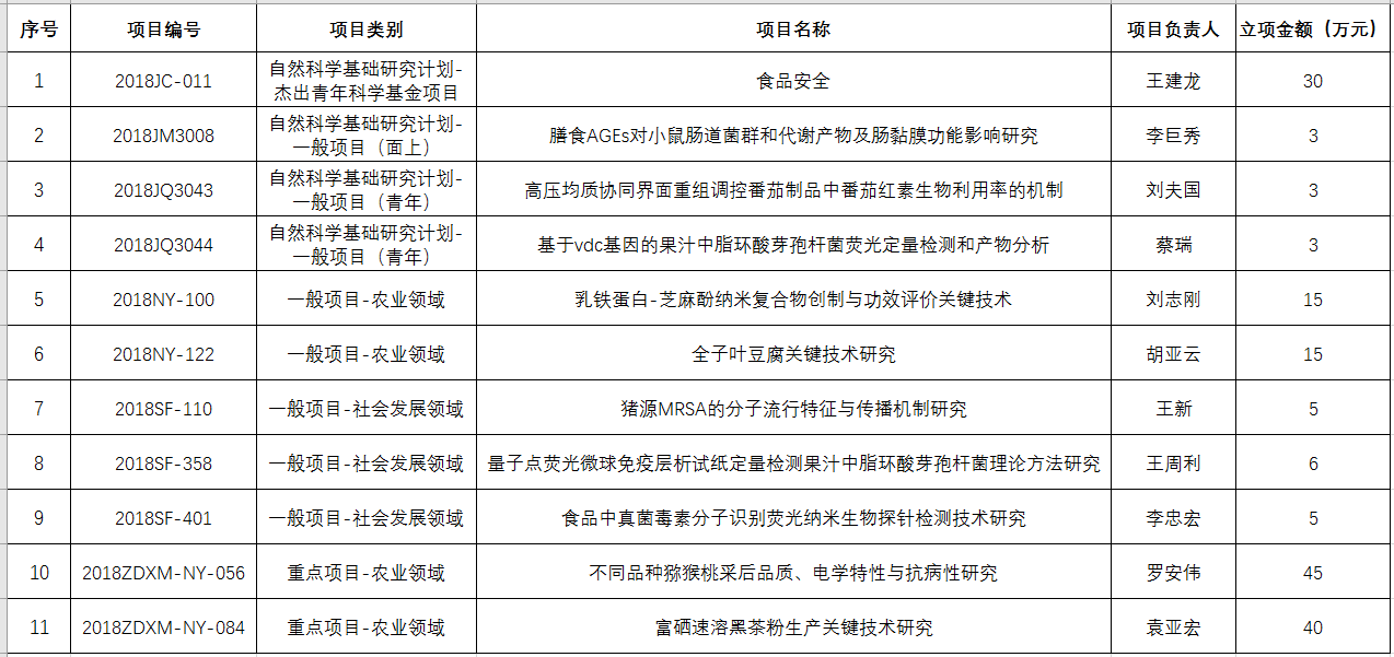 近日,陕西省科技厅公布了2018年度科技计划项目立项结果。公司喜获丰收,共立项11项,其中自然科学基础研究计划杰出青年科学基金项目1项,自然科学基础研究计划一般项目3项,农业领域重点项目2项,农业领域一般项目2项,社会发展领域一般项目3项。资助合同经费总额为170万,较2017年总资助经费总额增长了112.5%。