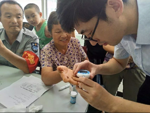 公司刘志刚副教授为村民测量血糖