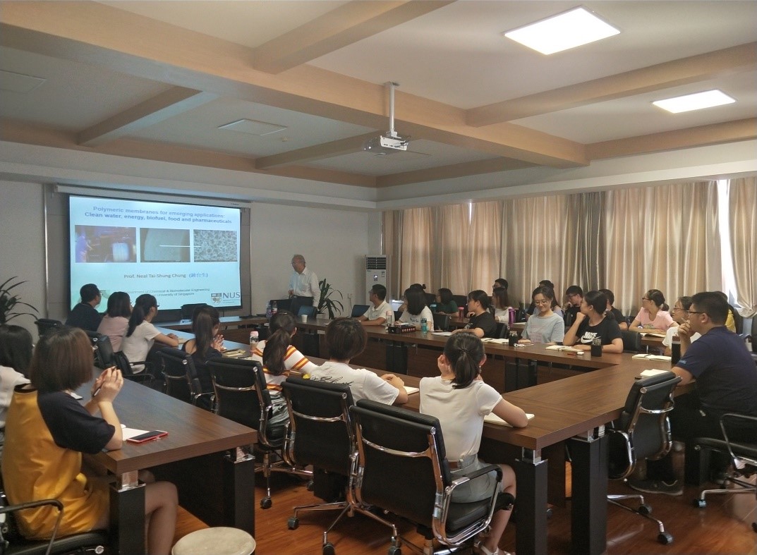8月31日下午,钟台生教授在365上市集团官网六楼创新会议室作了题为“Polymeric membranes for emerging applications: Clean water, energy, biofuel, food and pharmaceuticals”的学术报告,365上市集团官网李振宇教授主持了报告会。在本次报告中,钟教授介绍了其课题组近期在生物技术、清洁空气、清洁能源、清洁水、生物燃料和有机溶剂分离等膜技术领域的相关研究工作,并详细系统地介绍了膜科学与技术领域的国际最新研究进展以及膜技术在能源、食品、环境等方面的重要应用前景。