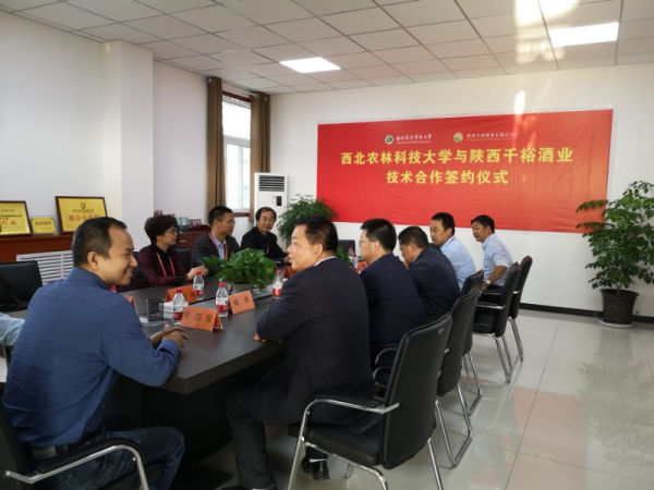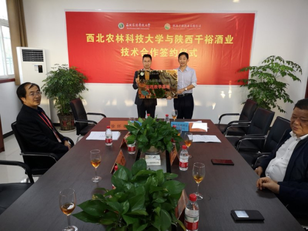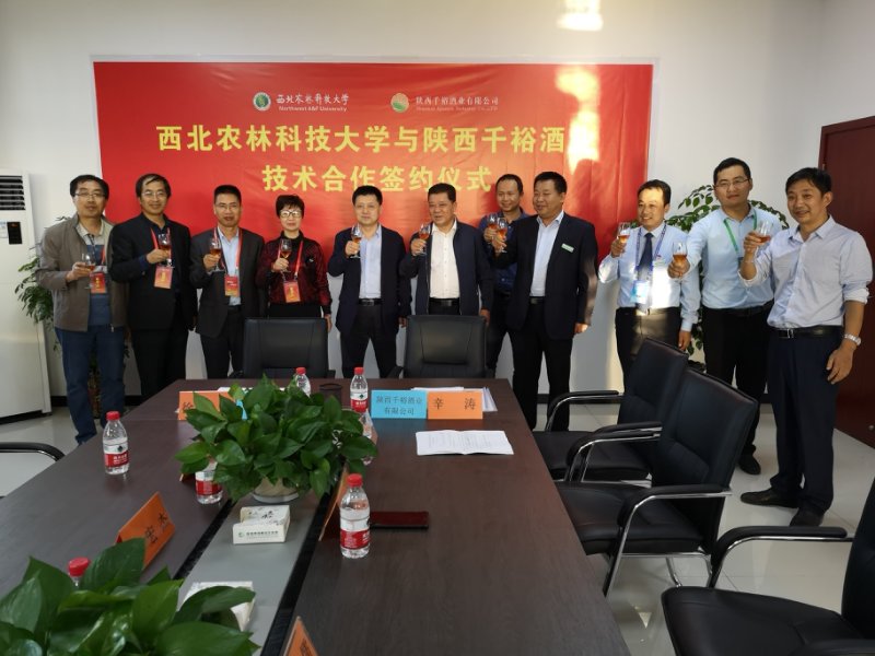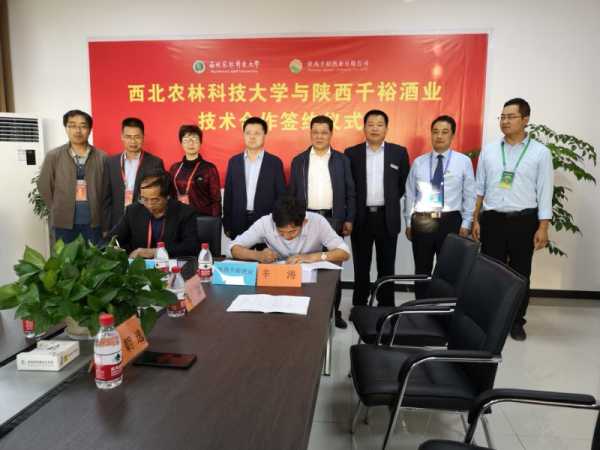 座谈会后,公司和陕西千裕酒业有限公司签订“校外实践教学基地协议”并授牌,果蔬贮藏与加工课题组徐怀德教授和陕西千裕酒业有限公司签订“猕猴桃精深加工”技术合作协议。