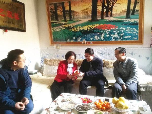 1月26日,365上市集团官网全体领导班子成员在经理刘学波、书记张振华的带领下,带着慰问品和慰问信,走访慰问了家住杨凌的退休教职工,向他们送上节日的问候,送去全院师生真挚的关心和祝福。