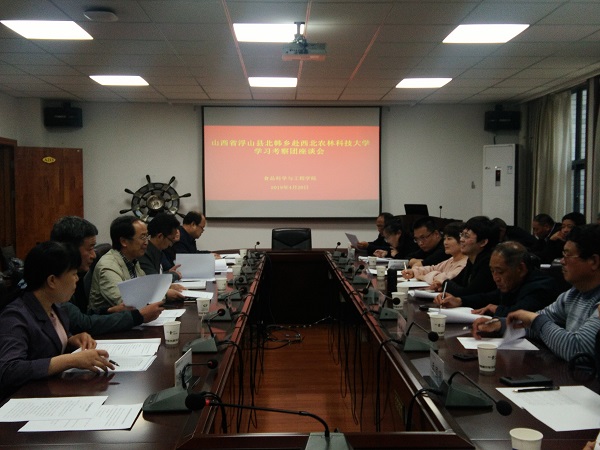 4月20日,山西省浮山县北韩乡乡长王临宾带领考察团20余人来公司交流考察,公司徐怀德教授、杜双奎教授、生命公司王渭玲教授、林公司刘朝斌、农公司高小丽副教授、动科公司辛亚平教授、任战军副教授等参加了座谈会。