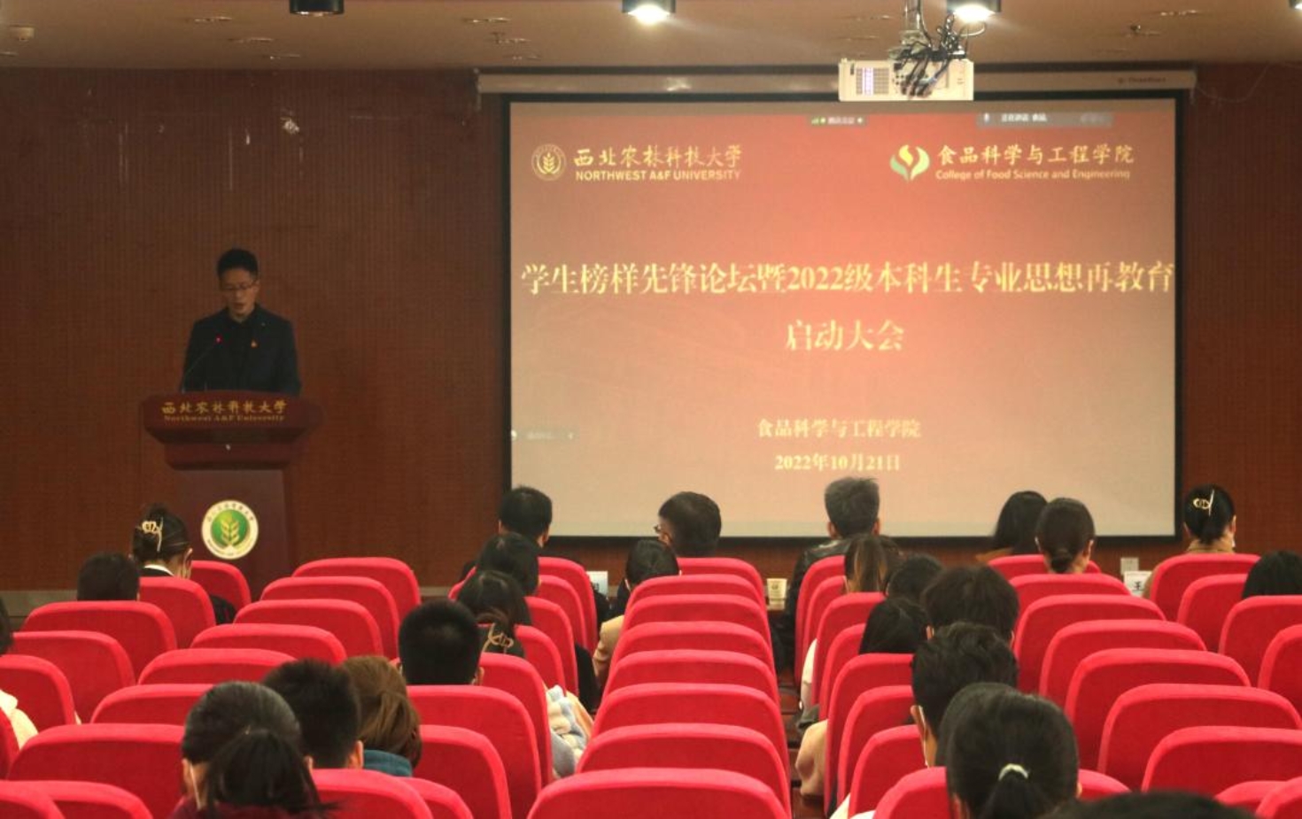 学风建设宣讲团成员,推免至清华大学医公司基础医学系张开惠、推免至本校李婧和特长生推免至本校吕欣然,面向新生分享学习经验方法,讲述食品故事。2022级新生代表赵雅培表示:“听了优秀员工和学长学姐的精彩分享,在之后的求学路上,自己要找对榜样,立好标杆,牢记诚朴勇毅校训,踔厉奋发,勇毅前行,不负韶华。”