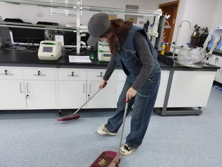 活动开始,党小组长李子清和胡晋瑶强调本次活动旨在响应习近平总书记号召,通过安排公共实验室清扫活动加深支部党员对崇尚劳动、热爱劳动、辛勤劳动、诚实劳动的劳动精神的理解。随后,党小组长安排志愿者携带扫帚、抹布等卫生工具,深入实验室各个卫生死角进行倒垃圾、扫地、擦桌子等劳动。在清扫过程中,志愿者们分工协作、干劲十足,充分发挥不怕苦、不怕累的精神。通过志愿者们的共同努力,实验室环境焕然一新。张雪同志表示:“劳动模范,是广大劳动者的先进代表。身为研究生党员我们要积极学习劳模求真务实,发挥实干,积极进取,争创一流的精神,充分展示劳动者的风貌和品格。在日常的学习生活中践行劳模精神,悉心维护实验室等公共区域卫生,以自身的劳动带动身边的每一个人。”