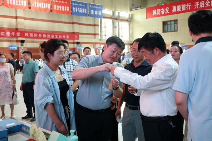 着力立德树人,特色礼包承“匠心”。“原来我们的专业不仅可以顶天,原来也可以这么立地。”迎新现场,公司精心设置了公司文化、专业特色和校庆为元素设计主题文创产品特色展区,并为新生准备了丰厚的大礼包。“一把“人与良,方为食”的良心尺,寓意着“学食品就是学做人,做食品就是做良心”。一瓶刻有新生姓名的金徽春酿定制纪念品,寓意着做人做学问要刚柔并济。一张从初识西农的认知卡到记录成长的纪念册,寓意着做事情有始有终,不忘初心,砥砺前行。公司将思政教育、专业教育与生涯规划教育相融通,旨在教育引导员工要立大志、明大德、成大才、担大任。”公司党委副书记张彦彦与新生及家长交流时谈到。