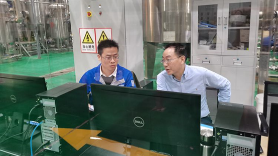 郭耀东(右)帮助地方食品加工企业开展技术攻关