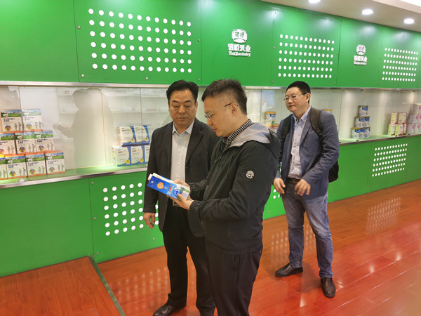 4月25日上午,经理吕欣、党委副书记汪勇攀、王新教授、办公室主任严艳一行前往银桥乳业有限责任公司参观调研,银桥乳业行政总监李啸林质量技术部总监王平、人力资源总监宋卫东等热忱欢迎并陪同参观。