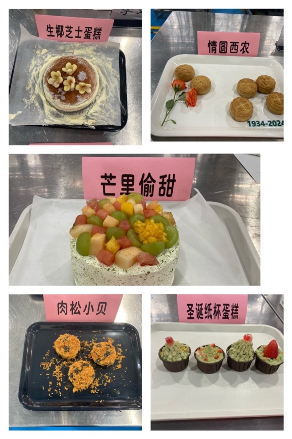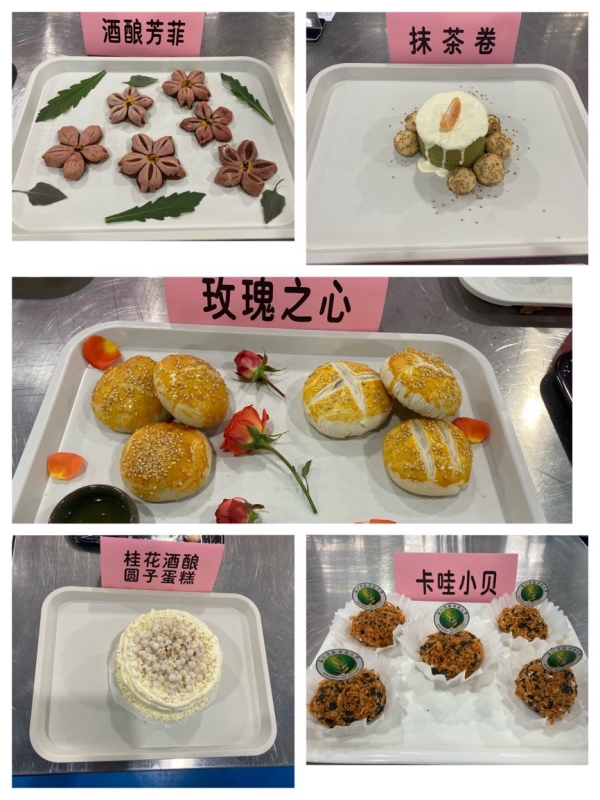 比赛中,各组参赛选手分工合作,运用烘焙理论知识,结合实践操作,以及别出心裁的创意,将面粉、鸡蛋、糖、油等食品原料,烘焙出了丰富多彩的产品,看得大家眼花缭乱,在色、香、味、形方面均达到一定的水平。评审过程中,经实物品评、现场答辩等程序,专家评委从参赛作品的设计思路、特色、外观、质地以及风味滋味等方面,对作品的创新性、营养性、风味等方面进行评判,最后评出咸奶茶泡泡、百福具臻、金小墨、豆沙烧果子4个作品荣获一等奖,迷雾之森、见春日、农墨重彩 四季予你等9个作品荣获二等奖,酒酿芳菲、玫瑰之心、抹茶卷等12个作品荣获三等奖,圣诞纸杯蛋糕、栗子蛋糕、菌菇小面包等22个作品获优秀奖。