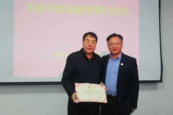 聘任仪式后,刘建书教授作了题为“营养健康食品的研究开发与展望”的学术报告,并与参会师生做了交流。报告中,刘建书教授从发展健康产业的必要性与市场现状、营养健康食品的研究方向两个方面做了分析,提出传统药食两用的营养功能食品的开发利用,是我国食品产业、农产品加工产业出现的发展机遇。刘建书教授还介绍了陕西省功能食品工程技术研究中心的团队情况、开展的科学研究和产品研发情况,希望今后加强与公司各团队的合作,为国家健康产业的发展贡献力量。