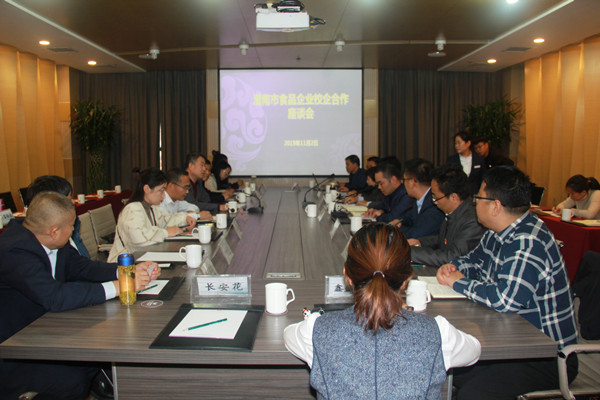 张振华一行向与会地方领导和食品企业代表介绍了公司和公司基本情况、近期公司和企业一起创新本科生毕业生产实习模式,公司组织老师和员工赴企业,由食品企业和教师根据企业技术革新或在生产中遇到的难题来提出“课题”,公司组成“毕业生产实习小团队”,进行任务分解,在企业或回公司开研究工作。最后公司组织“赴企业进行本科生毕业生产实习答辩”。部分答辩项目已经完全解决了企业的难题,得到企业的一致好评和感谢,体现了“产学研”合作的优势,员工服务行业企业,学以致用的意识和能力得到提高,有效创新了本科生的培养模式。提升了教学、教育质量。会上王云阳副经理向企业界征询本科培养方案建议,也追溯了与渭南经开区及相关食品企业开展合作的情况。汪勇攀副书记就部分食品企业设立就业实习基地等情况进行了商谈。