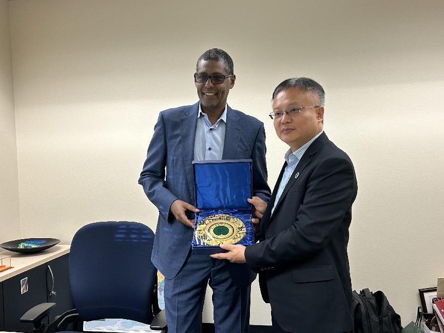 吕欣经理向国际事务部主任Ermias Kebreab教授赠送公司纪念品