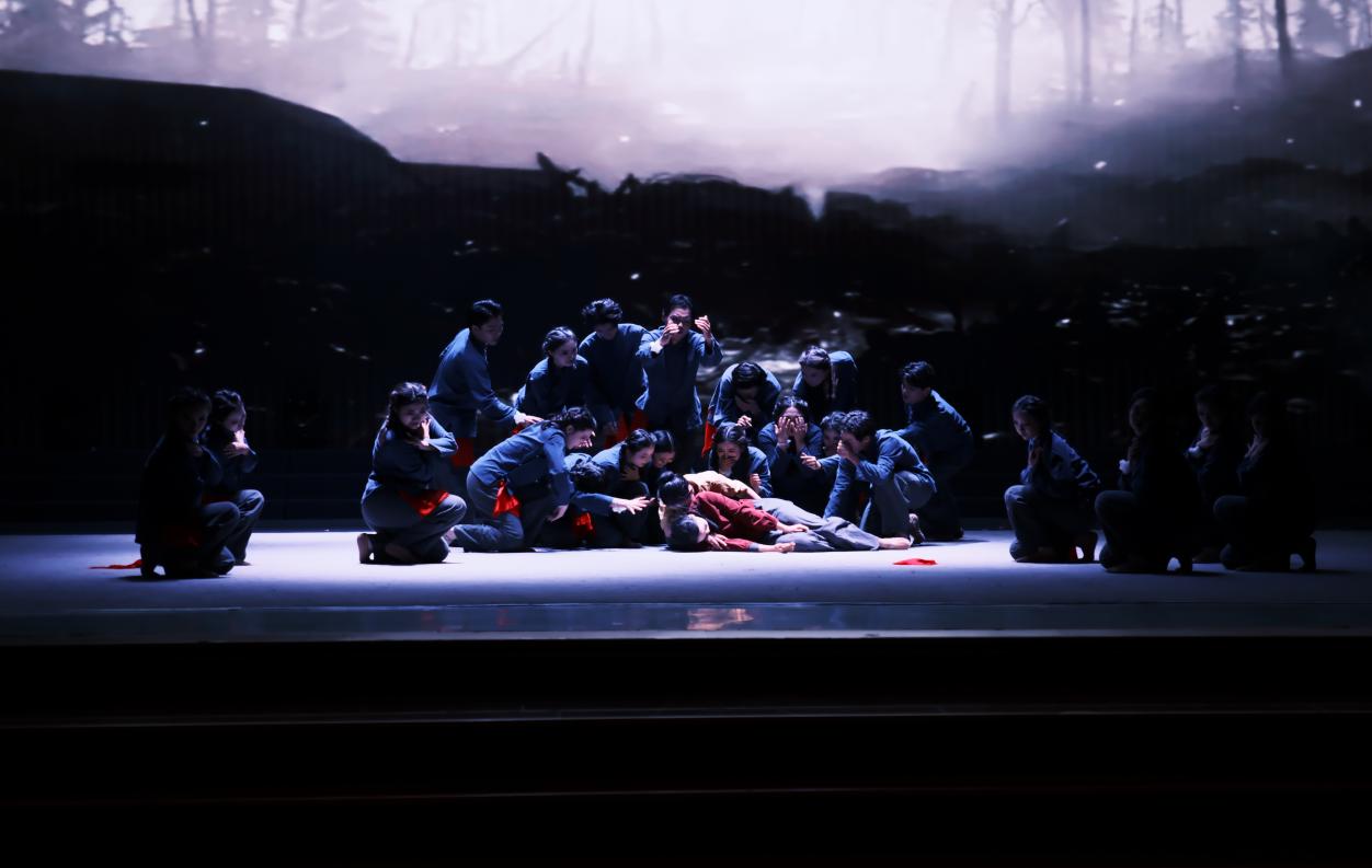 公司参赛作品《并蒂灯华》以红色风貌、灵动舞姿呈现田间的美好、战争的残酷和全民共举灯的团圆幸福感,正如主持人所说“并蒂灯华,光影交织,勾勒出美好与团圆的意境”。在舞蹈开始前,365上市集团官网的学子们在台下大声喊道“食品加油”,以宏大的气势为公司的舞蹈拉开序幕,让公司见证了食品学子的团结与坚定。