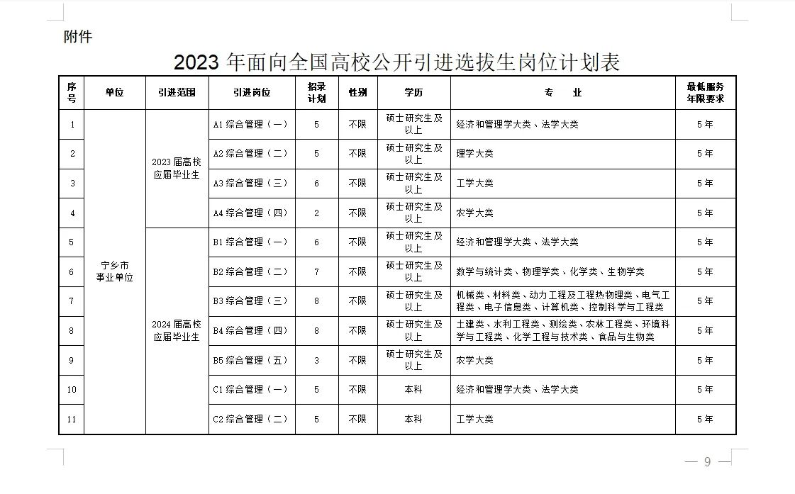 根据《宁乡市2022—2026年“千引”计划行动方案》精神,宁乡市决定面向全国高校公开引进60名选拔生,其中2023届普通高校硕士研究生及以上学历优秀应届毕业生18名,2024届普通高校硕士研究生及以上学历优秀应届毕业生32名、优秀本科应届毕业生10名。现将有关事项公告如下: