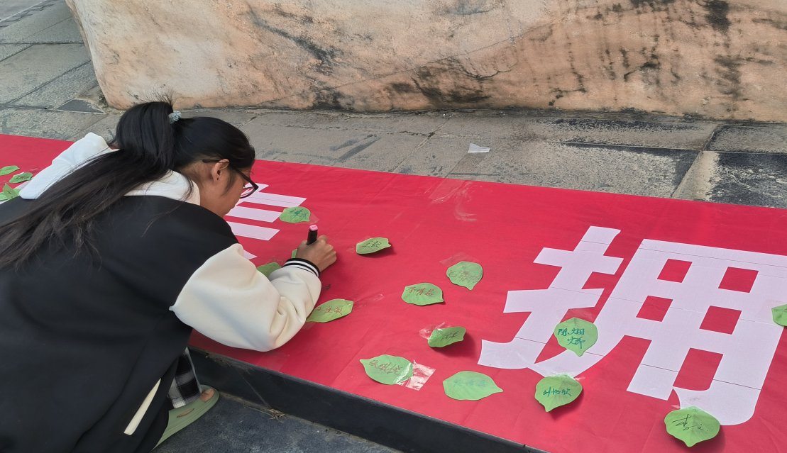 本次活动涵盖了植物种类、生态功能等方面知识,旨在增强员工植绿、爱绿、护绿的意识。活动中员工积极在横幅上手写植树节祝福、签名。随后,工作人员为答题优秀同学赠送绿植,呼吁学子们将绿植带回寝室,让绿色常驻心中,将“爱护环境,保护绿色”的理念践行在日常生活中,共同创造美好校园。