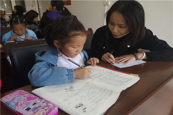 活动中期,志愿者准时集合并前往董家庄村。到达目的地,志愿者同孩子们进行了亲切地交流,并对孩子们近期的学习、生活情况进行简单了解。随后,志愿者们以耐心、认真的态度对孩子们进行课业辅导,并就孩子们提出的问题耐心解答。志愿者一方面作为老师,辅导孩子们完成作业,与孩子们交流分享学习方面的心得体会。另一方面,为提前完成学习任务的孩子们设计了趣味绘图活动,与孩子们一同进入五彩斑斓的绘画世界。